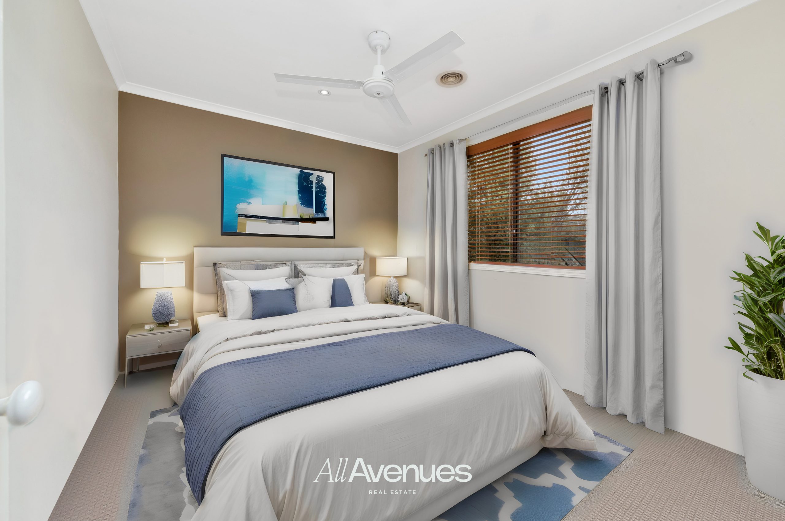 • Four bedrooms. Master bedroom with feature wall, celling fan, full ensuite his and her walk-in robe and SPA