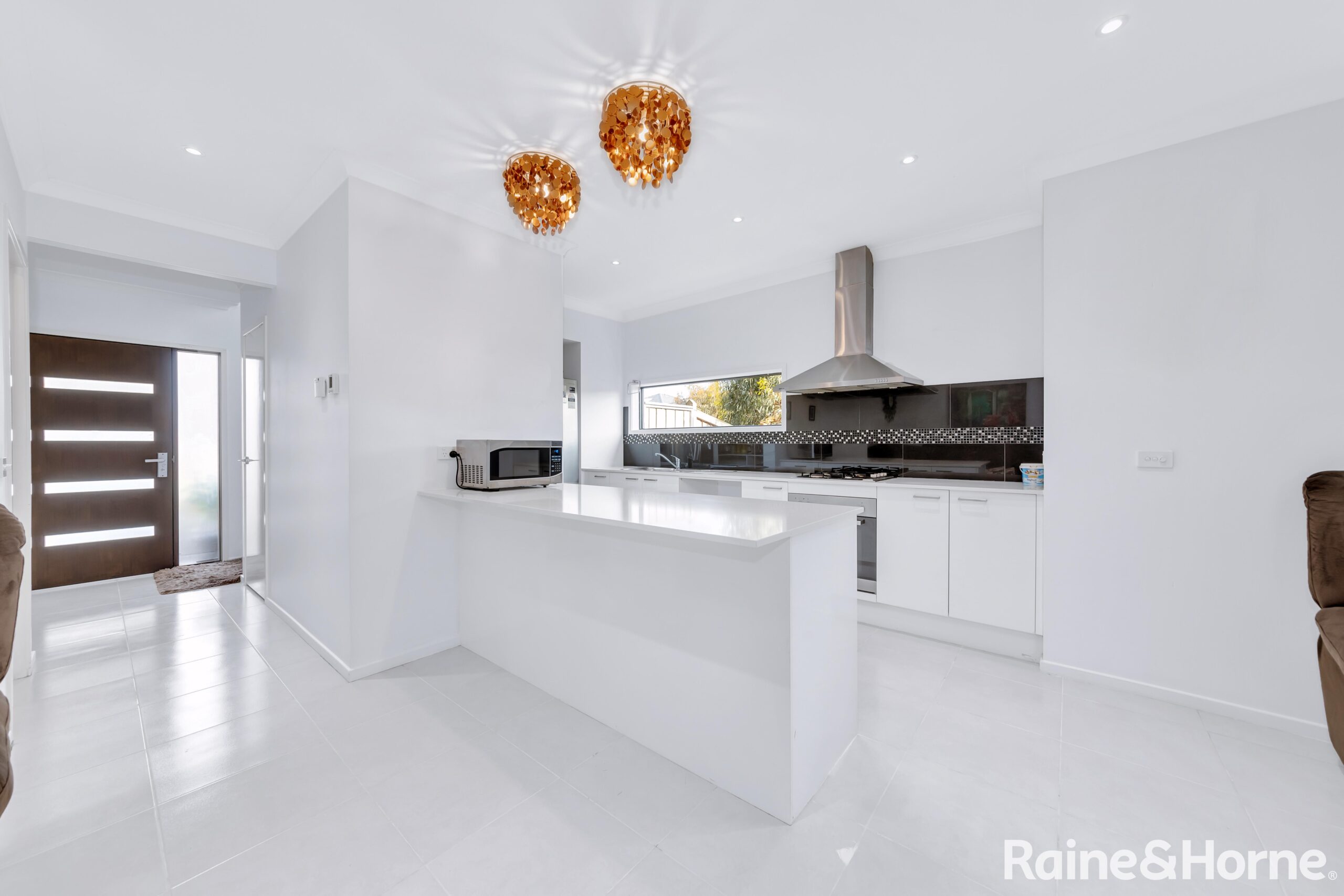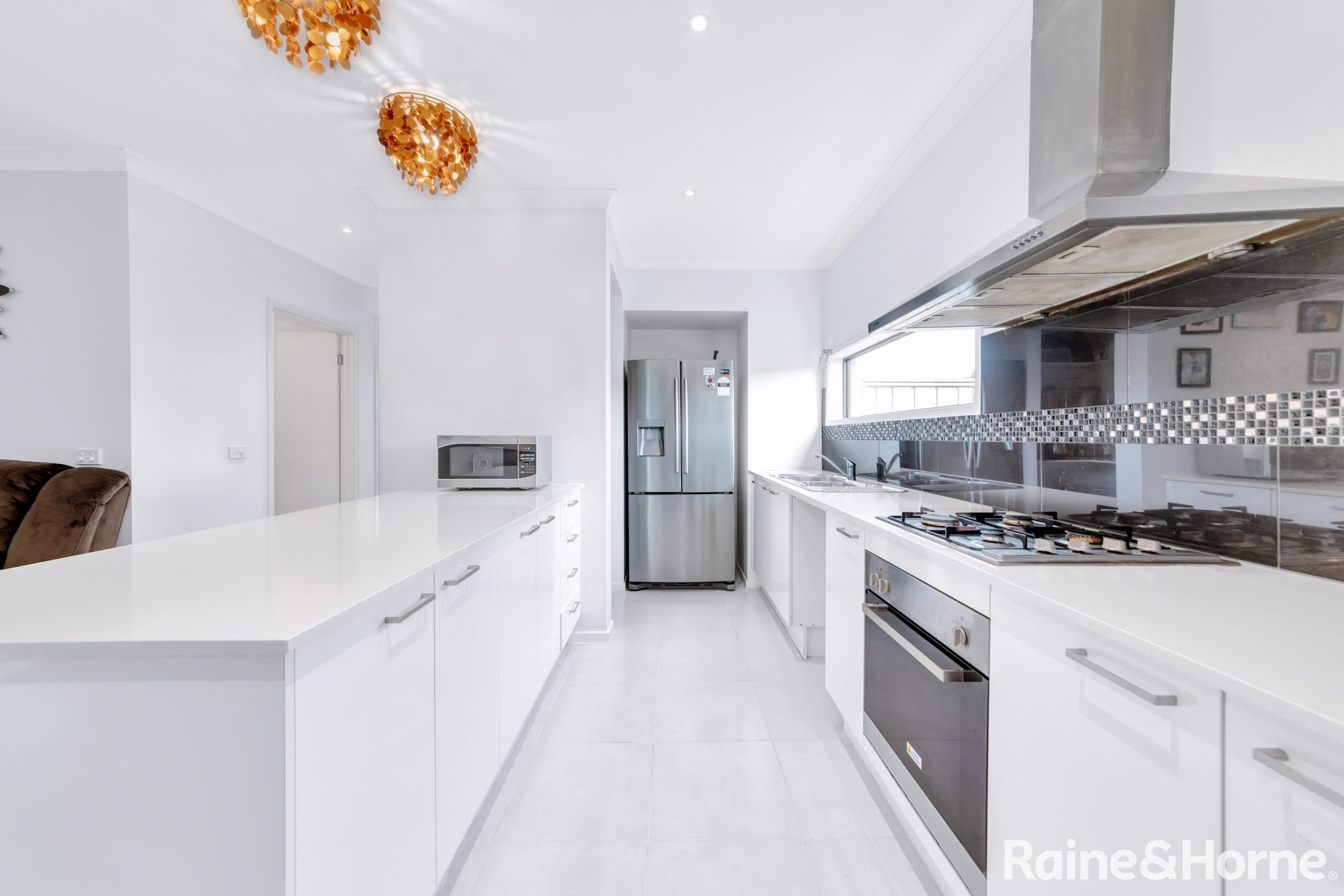 The home begins with an attractive showcasing wide hallway. Spreading ground level widely into an open plan living space alongside an impressive kitchen delights with glass splashback, stone benchtops, and includes top-quality stainless-steel appliances like oven and rangehood, under-mount sinks, and abundant of storage space with WIP. It’s complemented by an inviting dining zone and living area for entertaining guests. Furthermore, the large sliding doors lead to the enclosed alfresco/sunroom and beautifully landscaped backyard; a perfect space for outdoor entertainment and low maintainence living.
