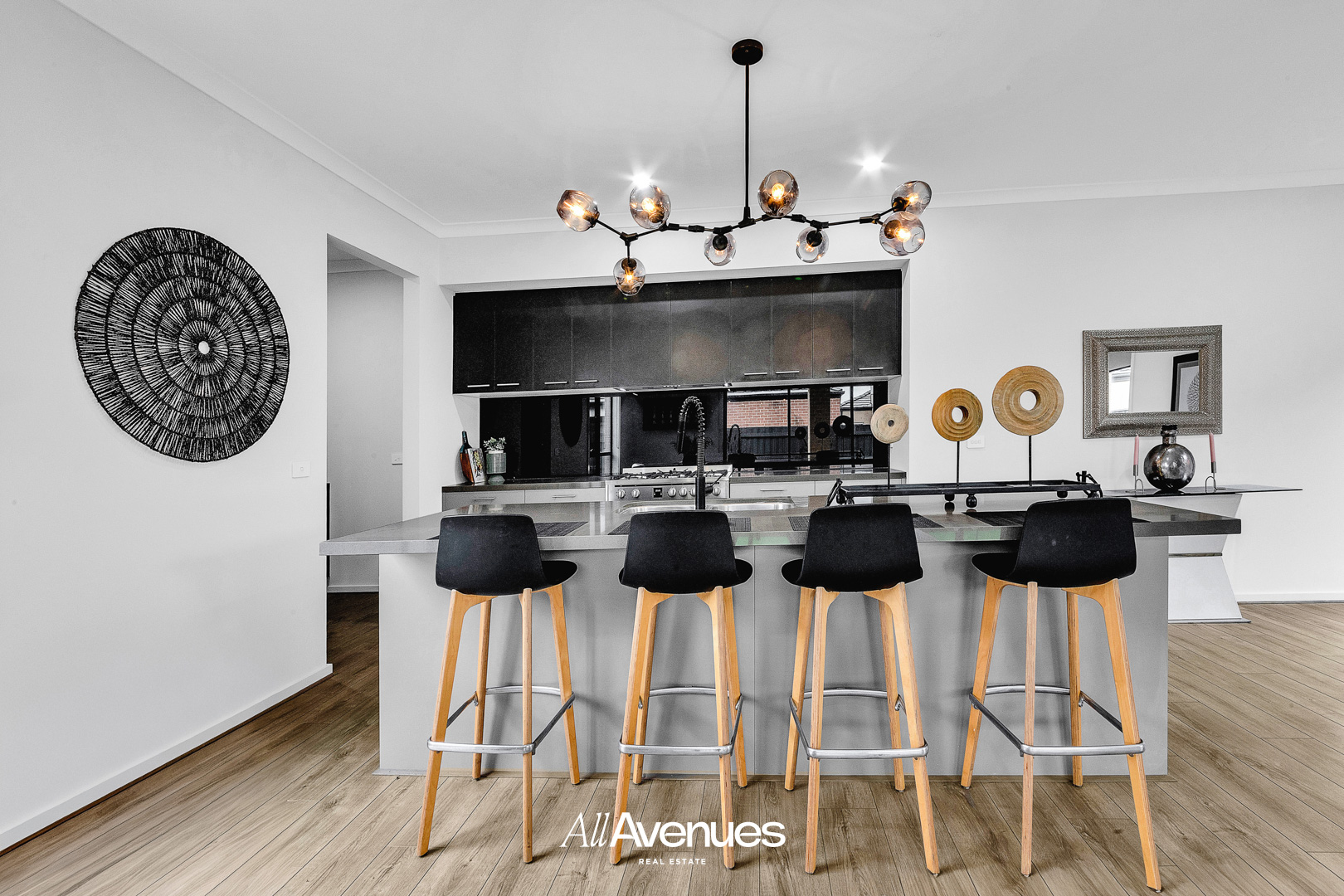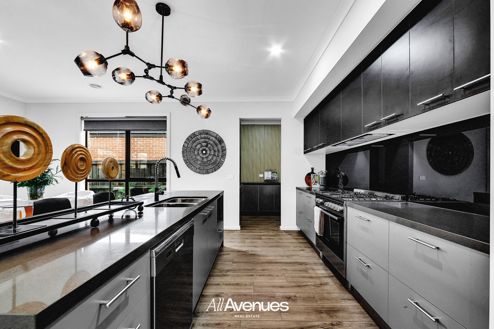 – Designer kitchen with stone benchtops, walk-in pantry & 900mm stainless steel appliances
