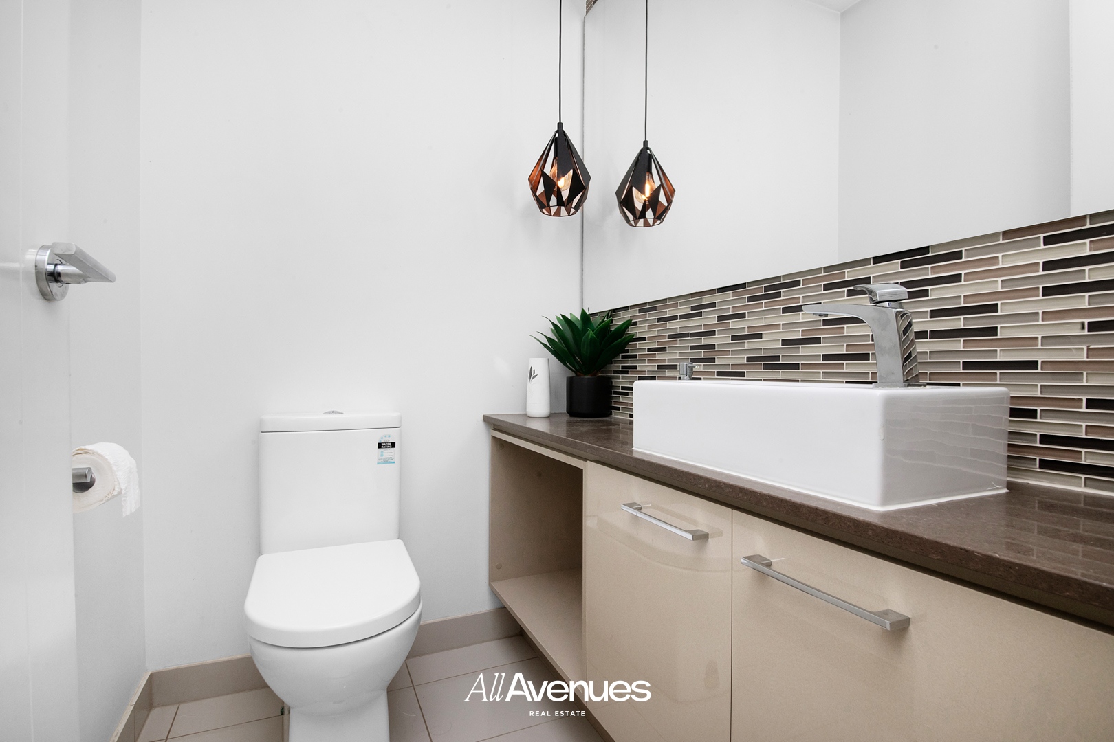 – Powder Room With Stone Bench Top