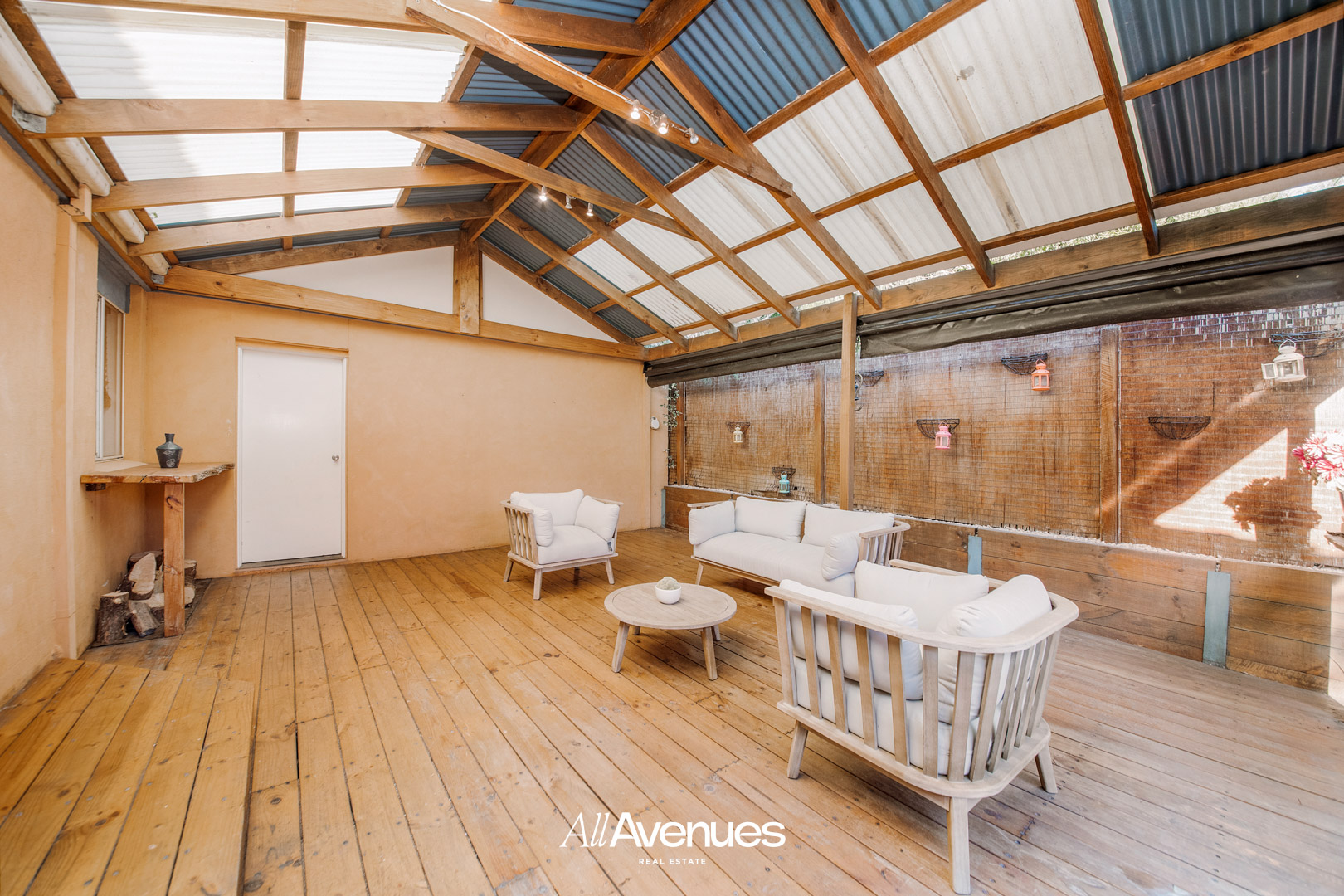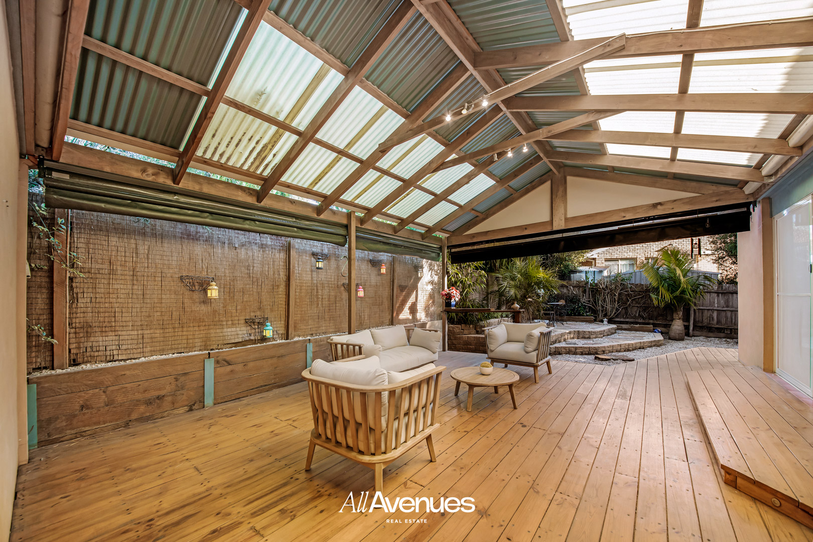 – Solid timber decking in pergola