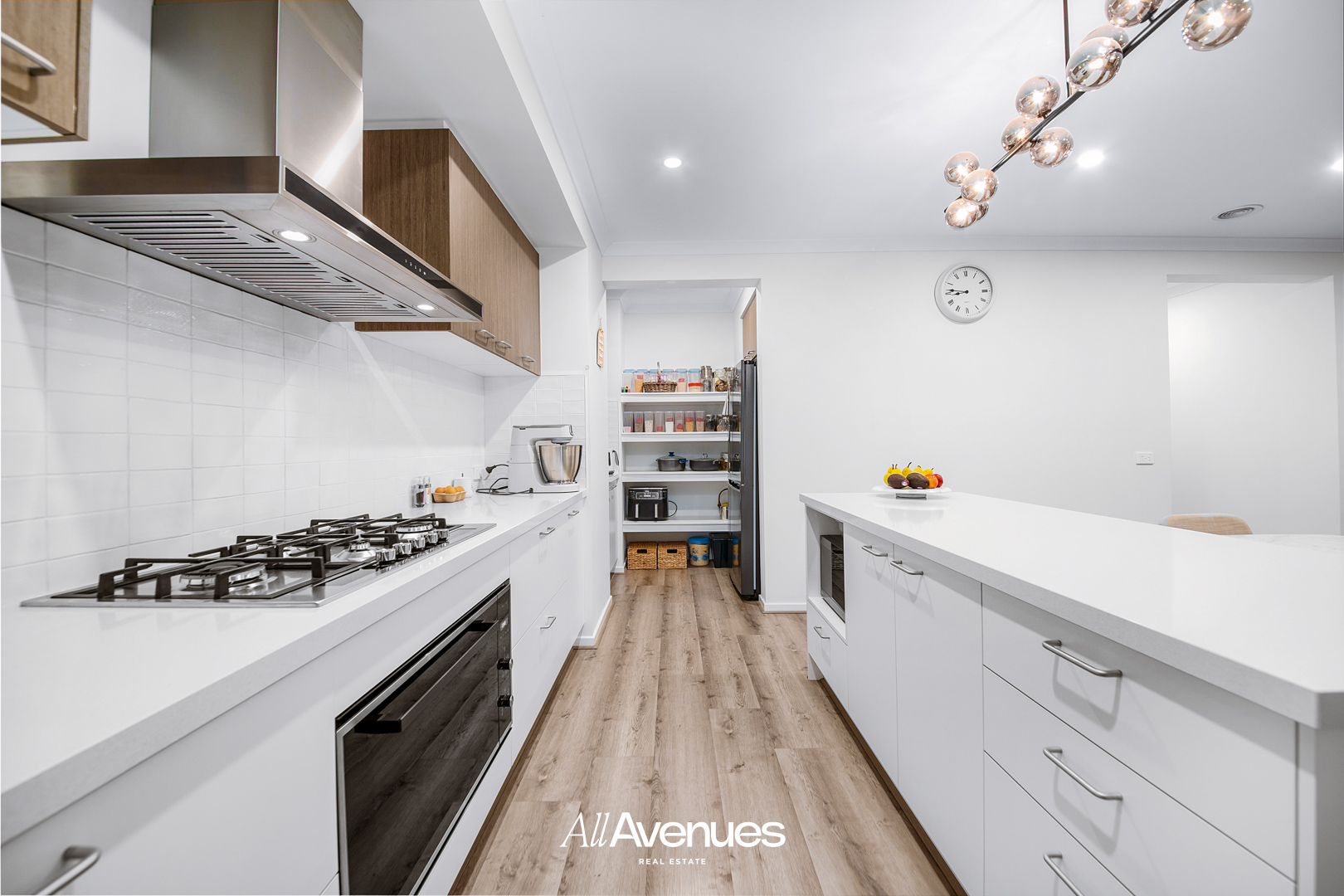 Followed by pantry, ample storage and tiled splash-back.
